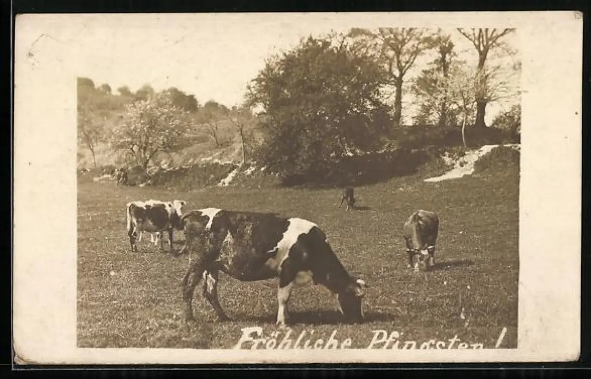 AK Weidende Kühe, Pfingstgruss