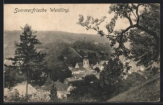 AK Weidling, Ortspartie mit Kirche