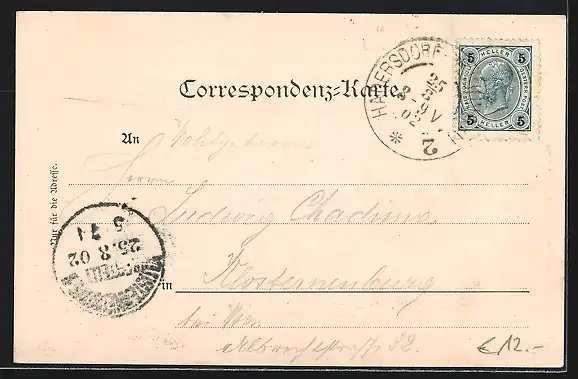 alte Ansichtskarte, gelaufen 1902, Stempelspur, guter Zustand