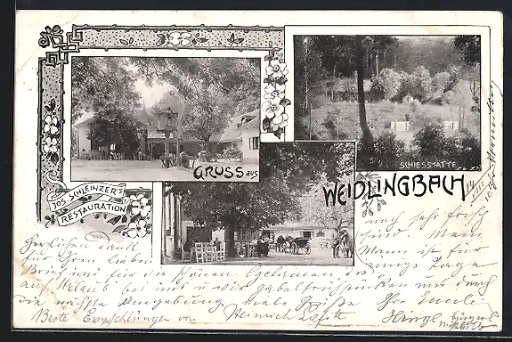 AK Weidlingbach, Gasthaus v. J. Schleinzer, Schiessstätte, Pferdekutsche