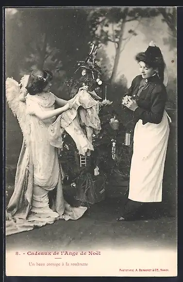AK Weihnachtsengel bringt einer Frau Geschenke