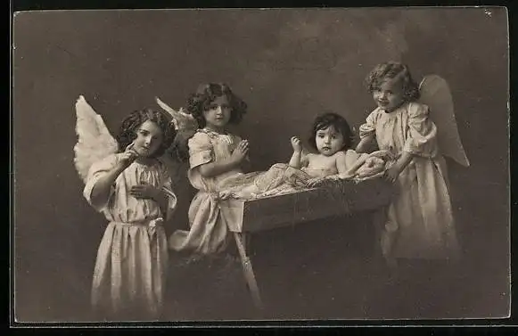 AK Weihnachtsengel mit dem Christkind in der Krippe