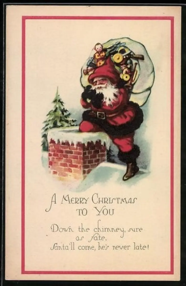 AK Weihnachtsmann ist dabei, in einen Schornstein zu steigen
