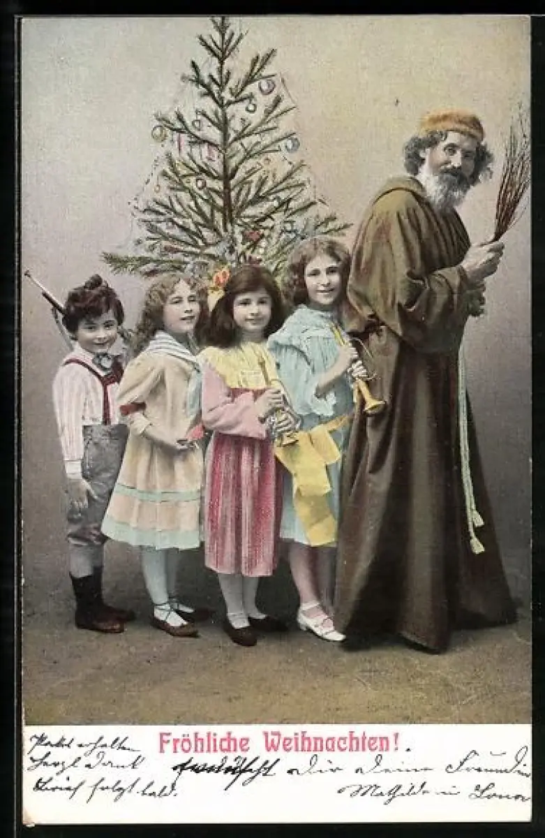 AK Weihnachtsmann mit einer Reihe von Kindern hinter sich