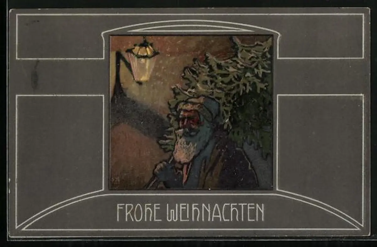 AK Weihnachtsmann trägt einen Tannenbaum auf der Schulter