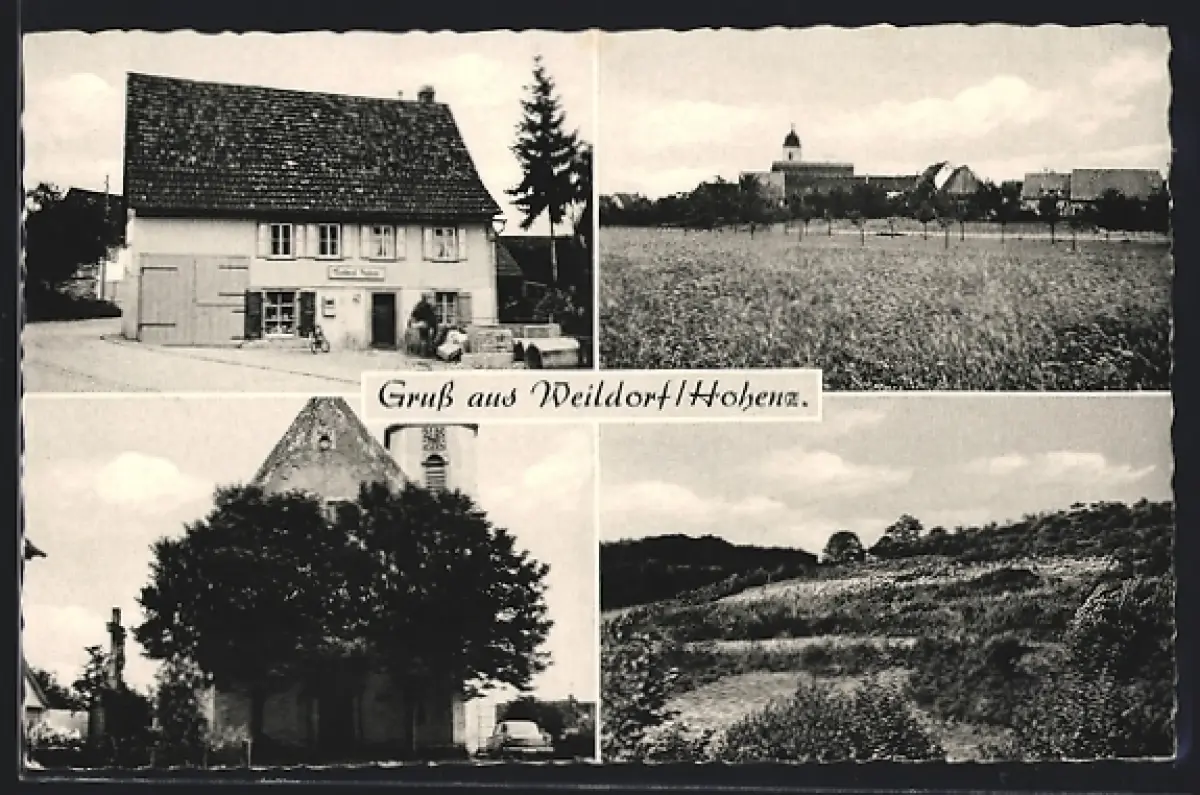 AK Weildorf / Hohenzollern, Geschäft Norbert Huber, Inh. M. Stehle, Teilansichten