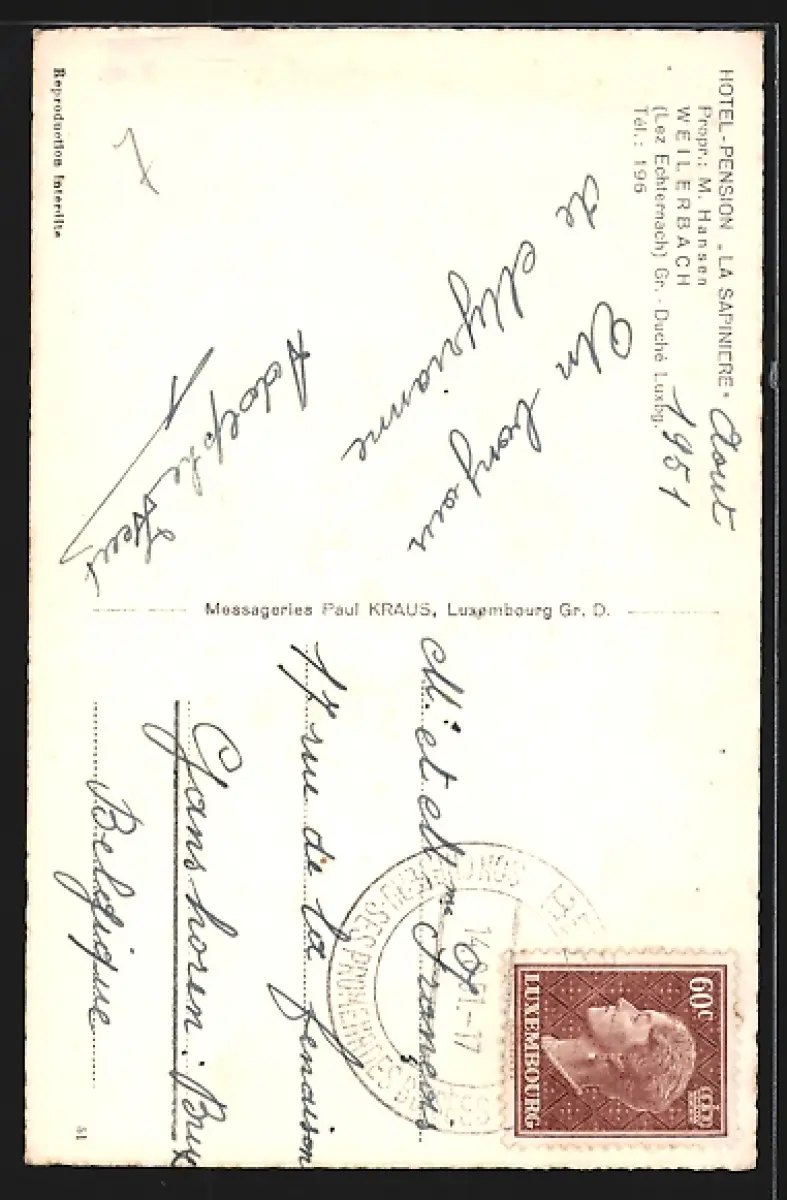 AK Weilerbach, Hotel-Pension La Sapiniere, Propr. M. Hansen