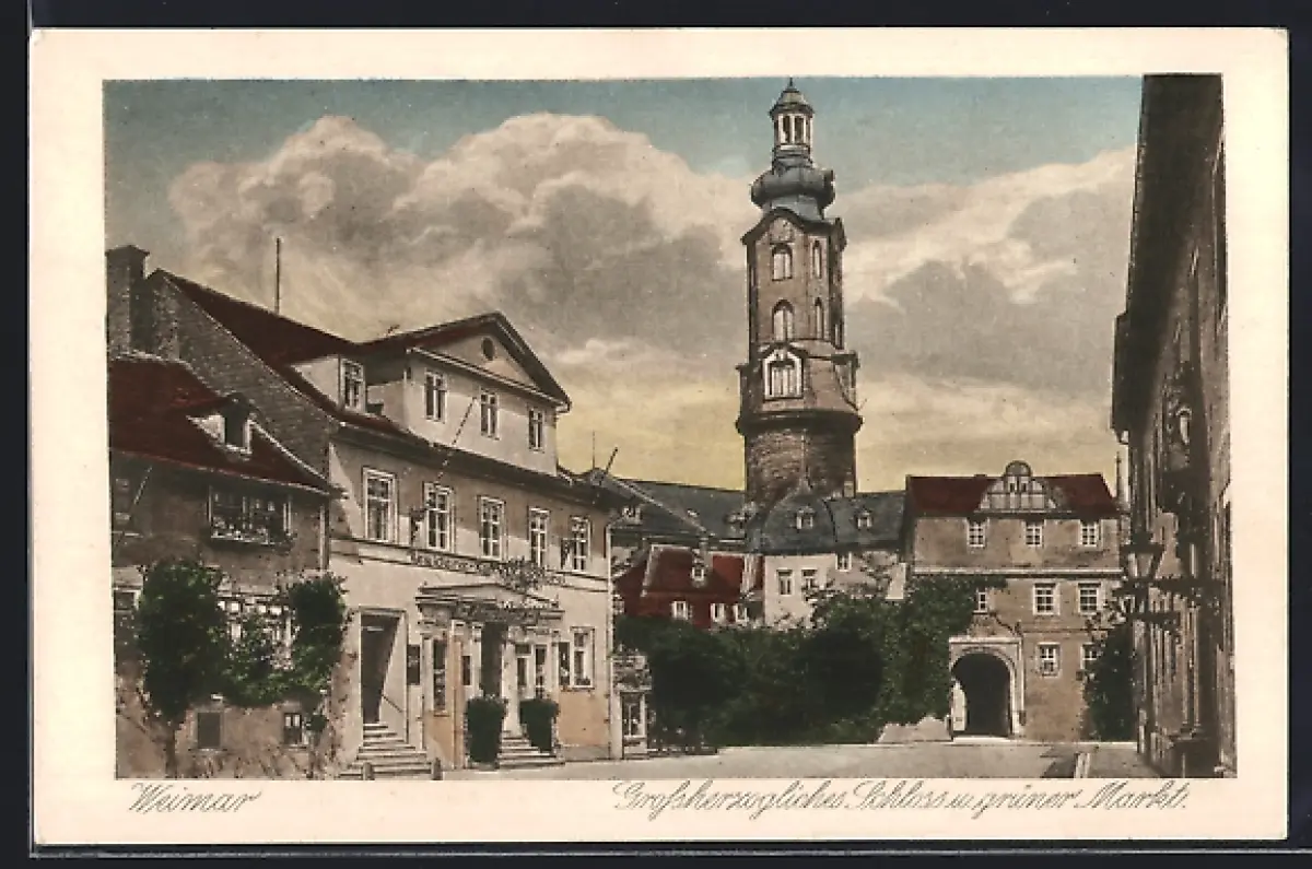 AK Weimar / Thür., Schloss und grüner Markt, mit Konditorei