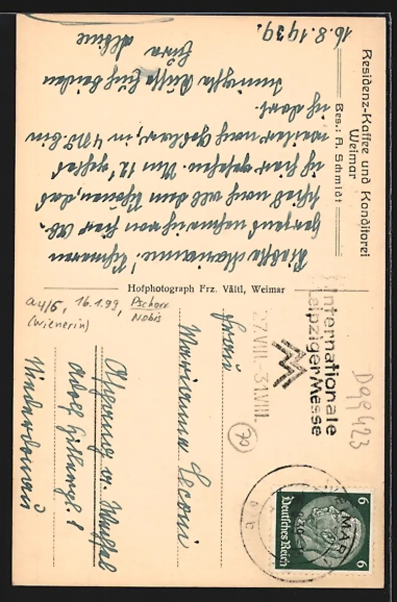 AK Weimar / Thüringen, Cafe und Konditorei Goethezimmer, Inh. A. Schmidt