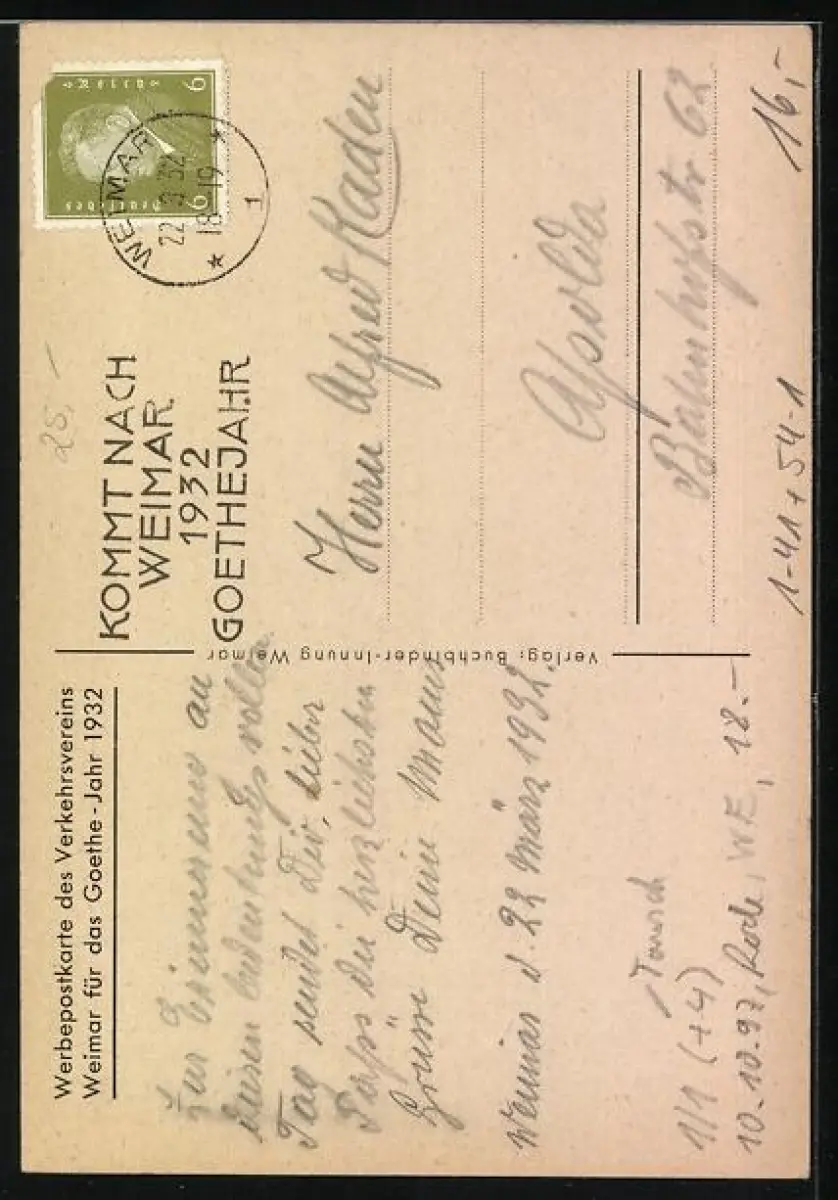 AK Weimar / Thüringen, Festpostkarte Goethe-Jahr 1932, Portrait Johann W. Goethe