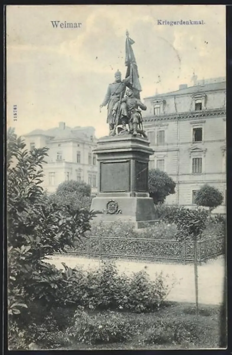 AK Weimar / Thüringen, Kriegerdenkmal mit umliegendem Garten