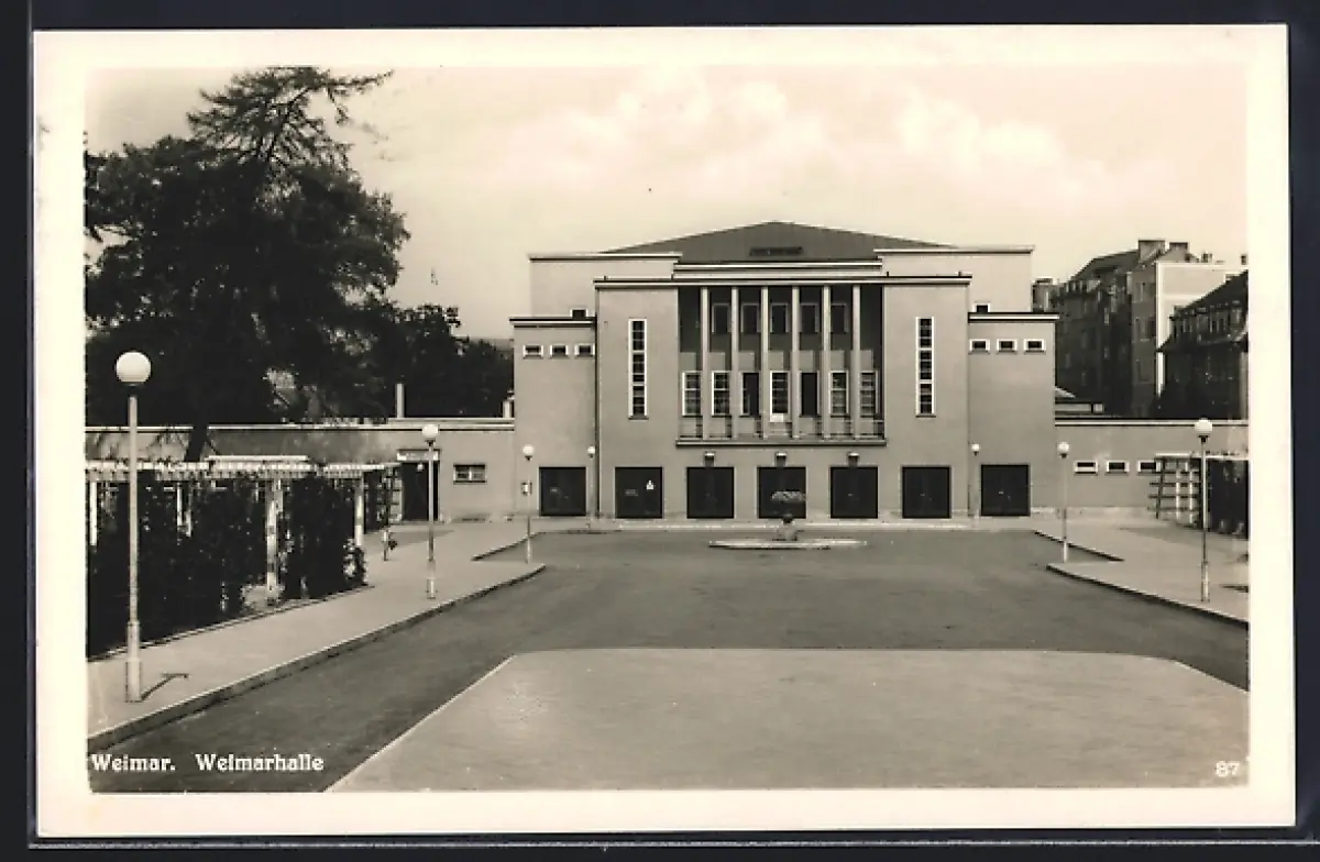 AK Weimar / Thüringen, Weimarhalle mit Vorplatz