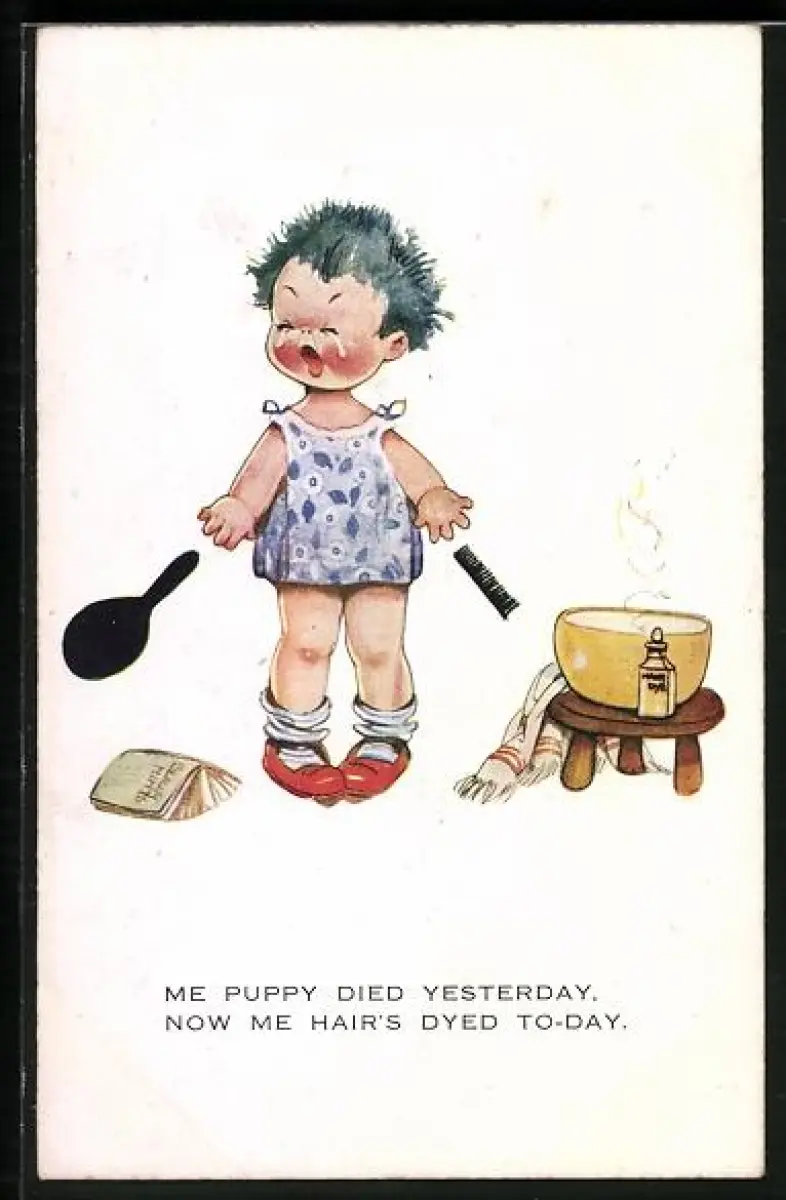 AK Weinendes Kind an der Waschschüssel