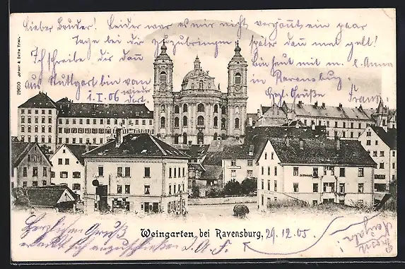 AK Weingarten bei Ravensburg, Ortsansicht mit der Stiftskirche
