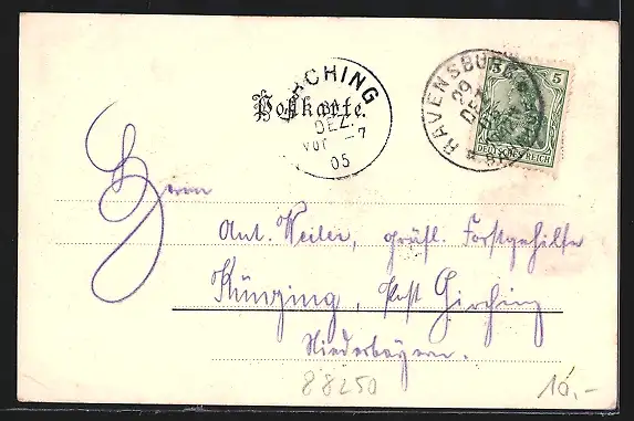 alte Ansichtskarte, gelaufen 1905, Eckknicke re., guter Zustand
