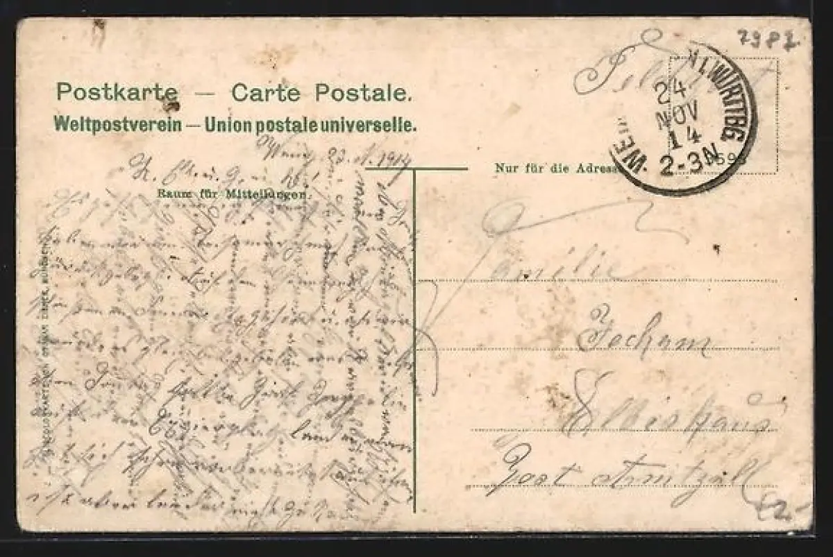 alte Ansichtskarte, gelaufen 1914, Stempelspur, guter Zustand