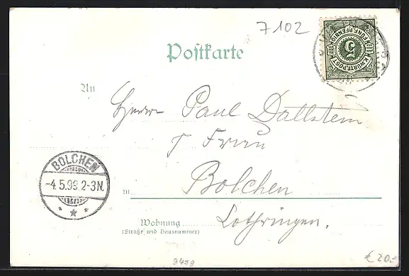 alte Ansichtskarte, gelaufen 1899, guter Zustand