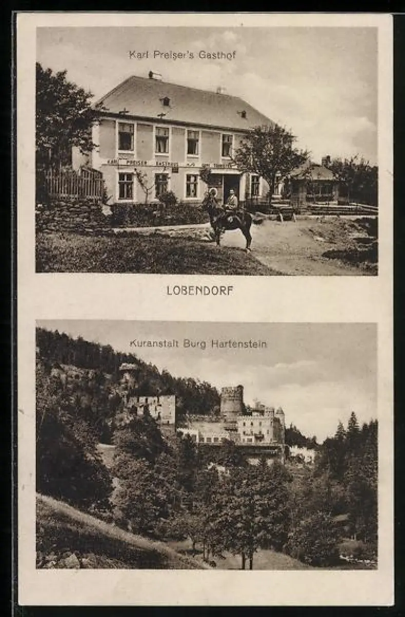 AK Weinzierl am Walde, Lobendorf, Karl Preisers Gasthof Zum Touristen, Kuranstalt Burg Hartenstein