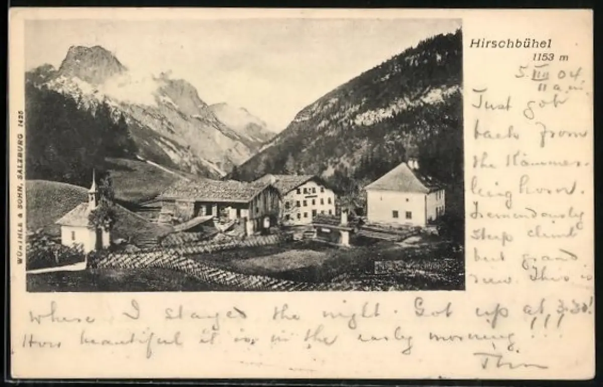 AK Weissbach bei Lofer, Hirschbühel, Partie mit Kirche im Gebirge