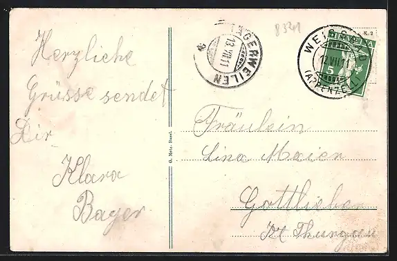 alte Ansichtskarte, gelaufen 1911, guter Zustand