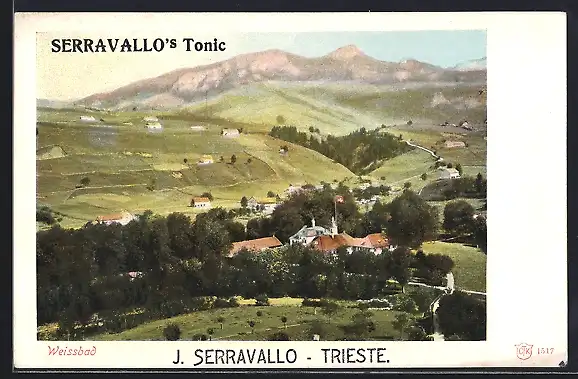 AK Weissbad, Ortsansicht von oben mit Bergpanorama