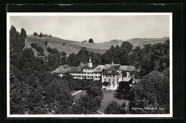 AK Weissbad, das Kurhaus von Wald umgeben