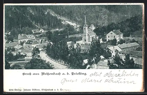 AK Weissenbach a. d. Triesting, Teilansicht mit Kirche