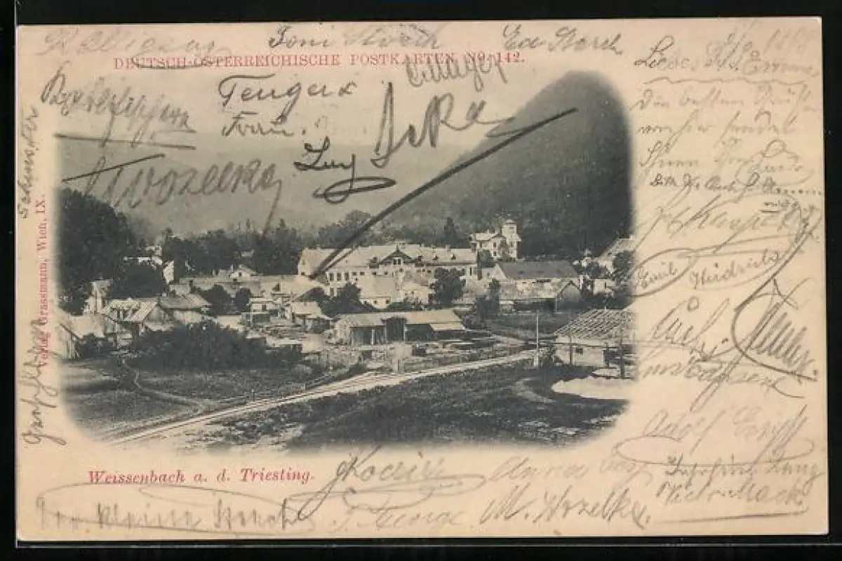 AK Weissenbach a. d. Triesting, Totalansicht aus der Vogelschau