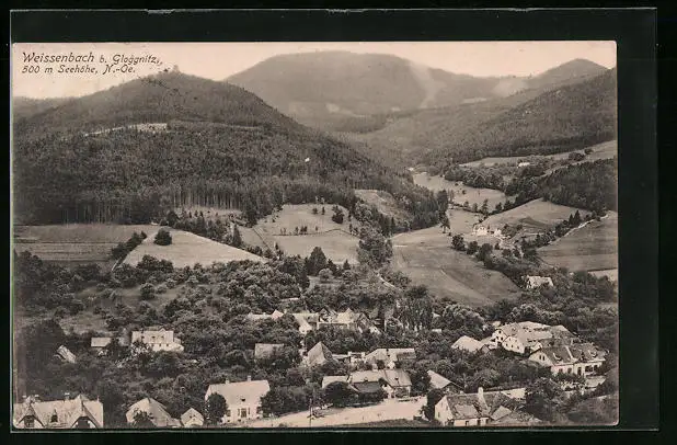 AK Weissenbach b. Gloggnitz, Ortsansicht aus der Vogelschau