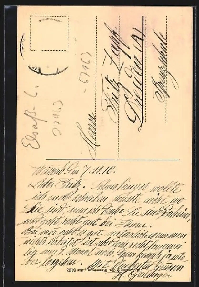 alte Ansichtskarte, gelaufen, Briefmarke entfernt, guter Zustand