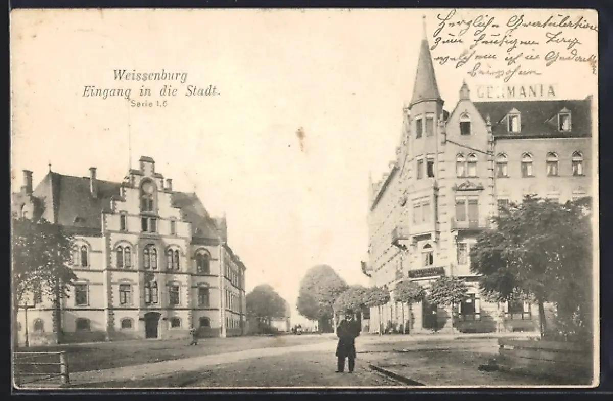 AK Weissenburg, Entrée de la ville avec bâtiments historiques