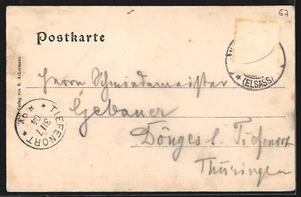 alte Ansichtskarte, gelaufen 1904, Briefmarke entfernt, guter Zustand