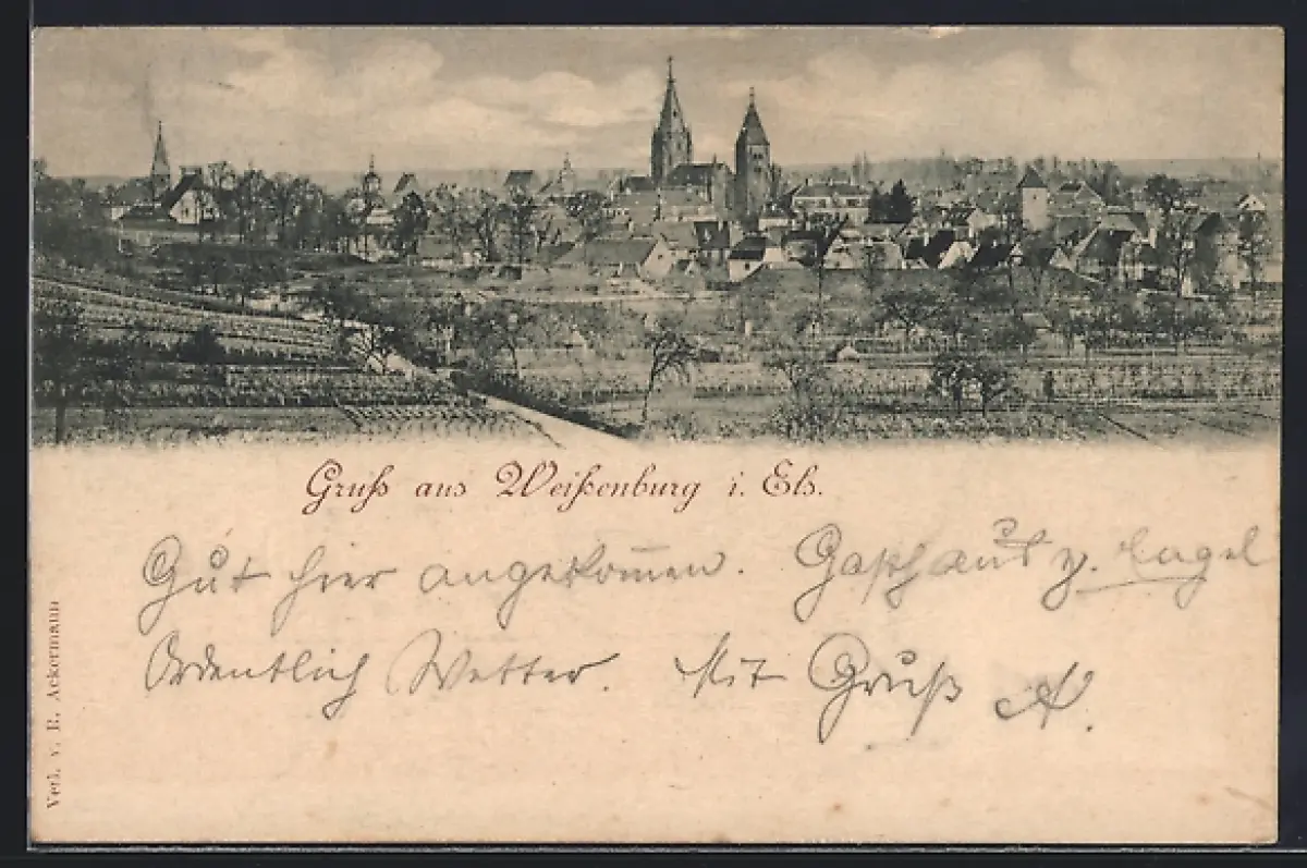 AK Weissenburg i. Els., Vue sur la ville avec les églises et les vignes environnantes