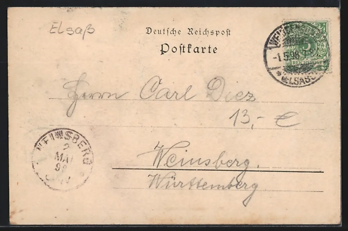 alte Ansichtskarte, gelaufen 1898, guter Zustand