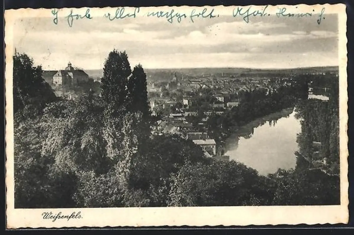 AK Weissenfels, Stadtansicht mit Flusspartie