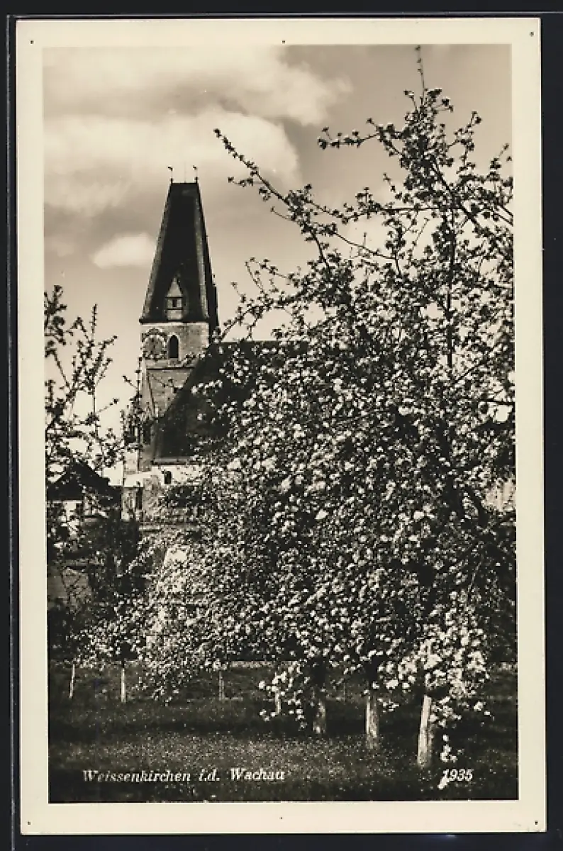 AK Weissenkirchen i. d. Wachau, Ortspartie mit Kirche