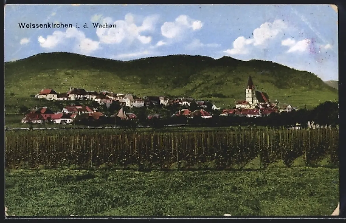 AK Weissenkirchen in der Wachau, Ortsansicht mit Bergpanorama
