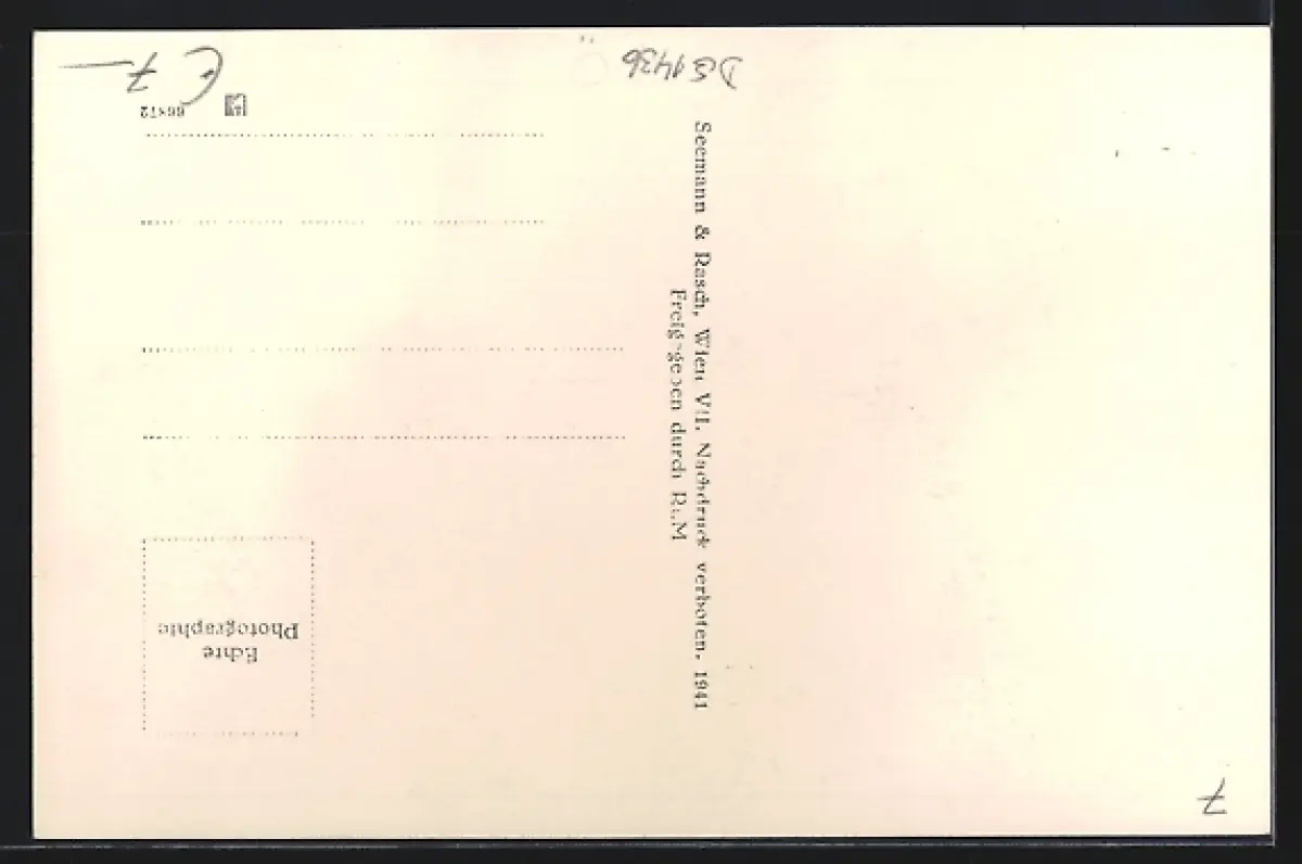Personenbezogene Daten auf der Rückseite der Karte wurden durch blauen Textmarker unkenntlich gemacht. Die blauen Stellen sind auf die Vorderseite durchgeweicht und wirken sich negativ auf das Postkartenfoto aus