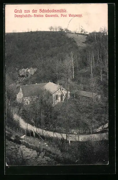 AK Weistropp, Schiebocksmühle aus der Vogelschau