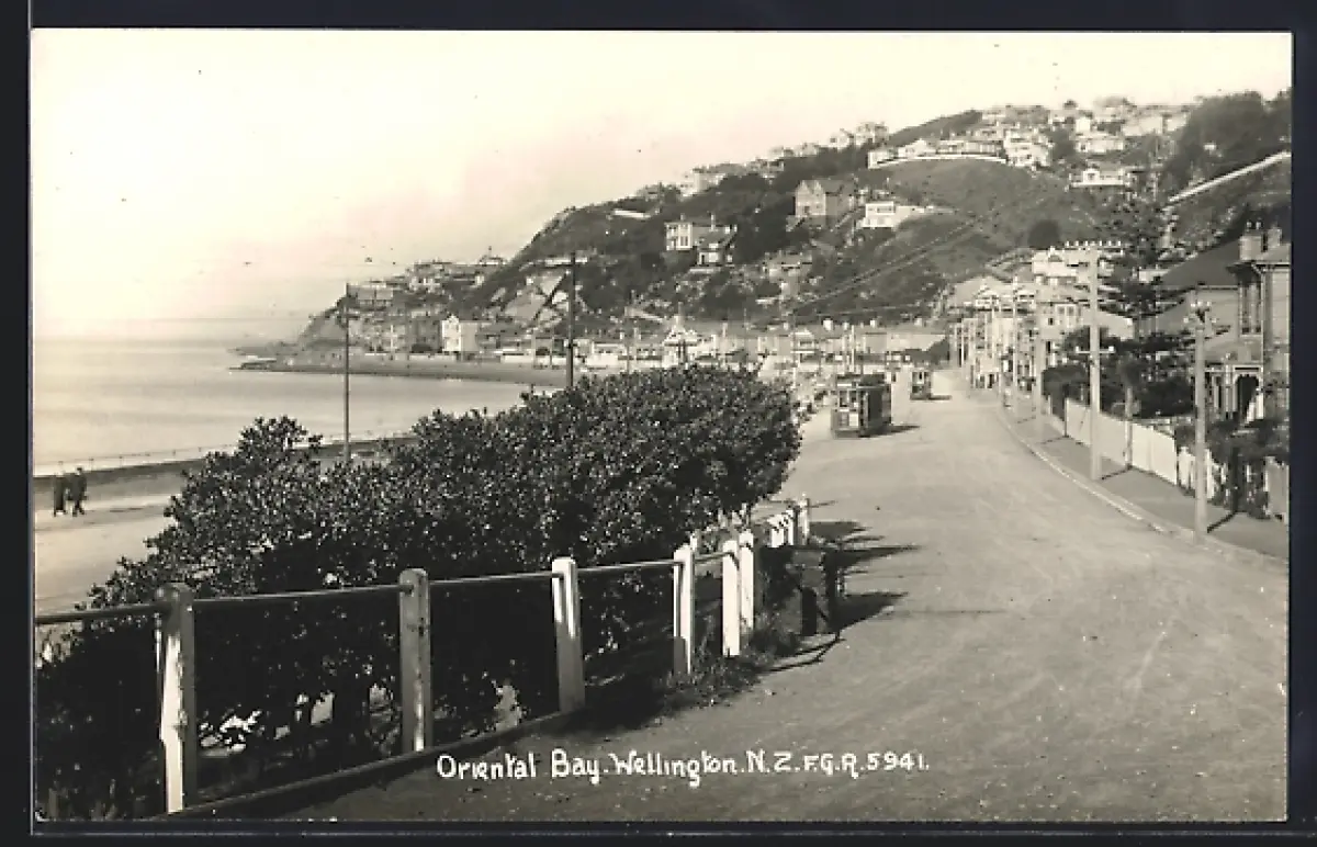 AK Wellington, Oriental Bay, Strassenbahn