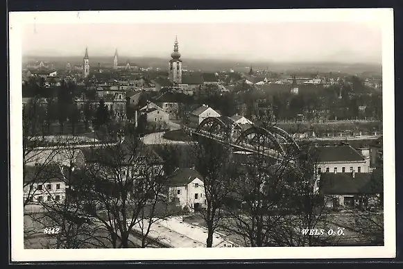 AK Wels /O.-Ö., Teilansicht mit Kirche und Brücke