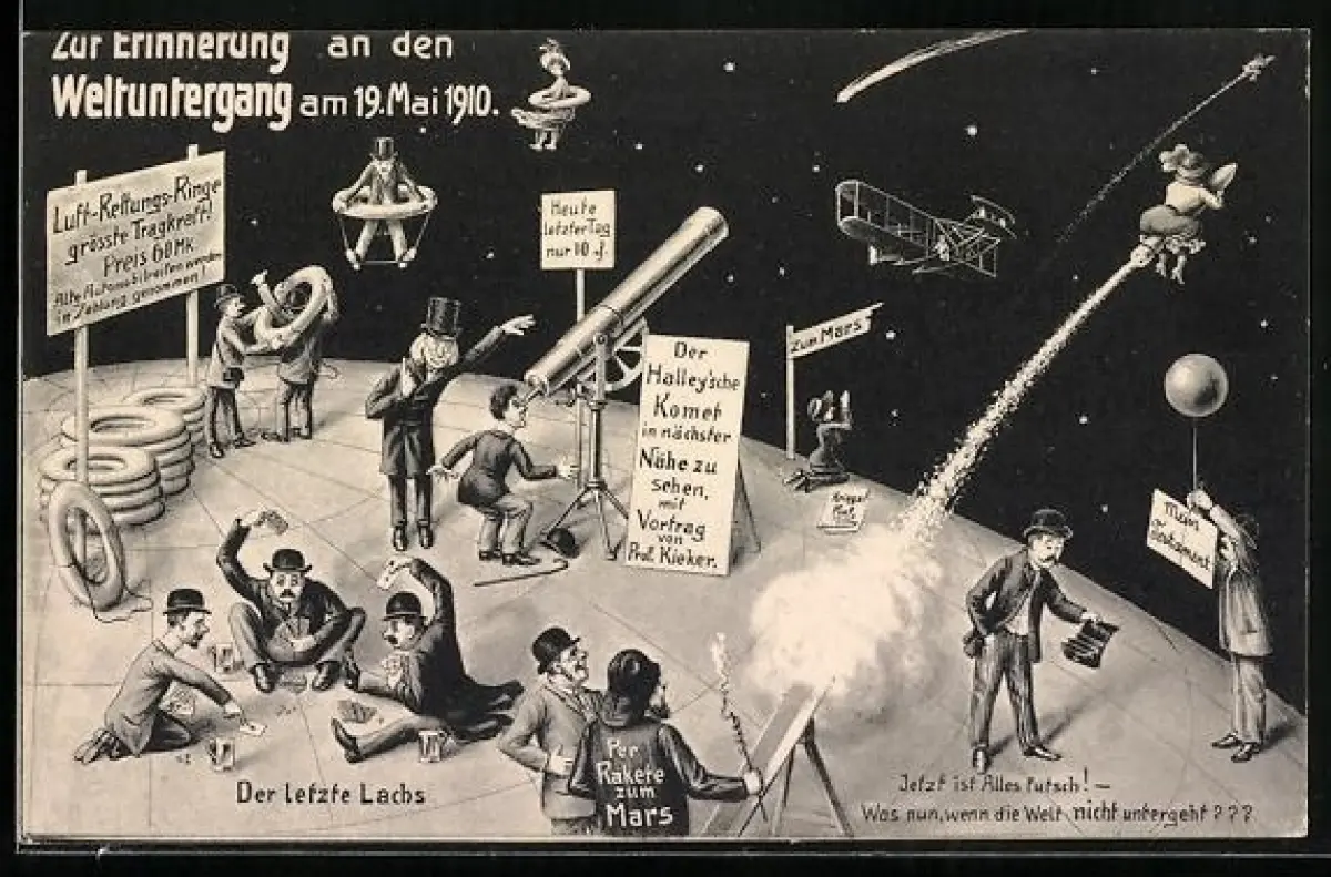 AK Weltuntergang 19. Mai 1910, Leute bereiten sich auf den Weltuntergang vor