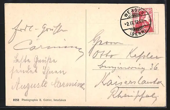 alte Ansichtskarte, gelaufen 1912, guter Zustand