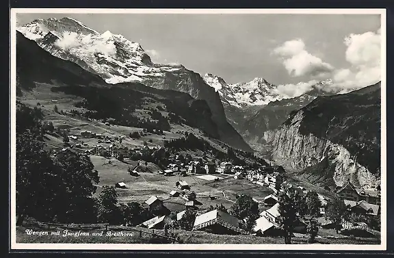 AK Wengen, Teilansicht mit Jungfrau und Breithorn
