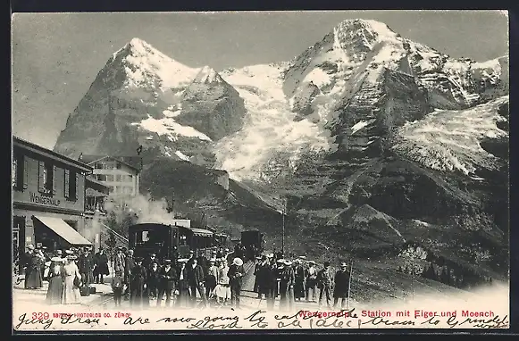 AK Wengernalp, Fahrgäste und Bergbahn an der Station