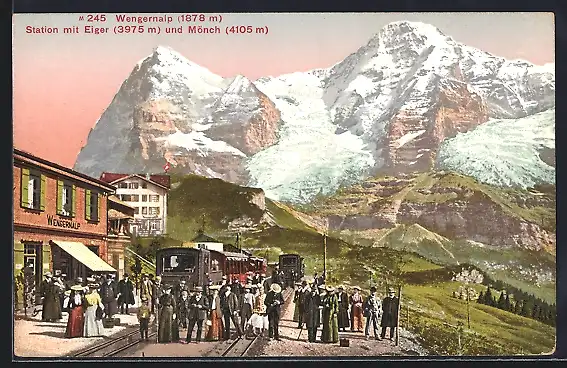 AK Wengernalp, Station mit Reisenden auf den Gleisen