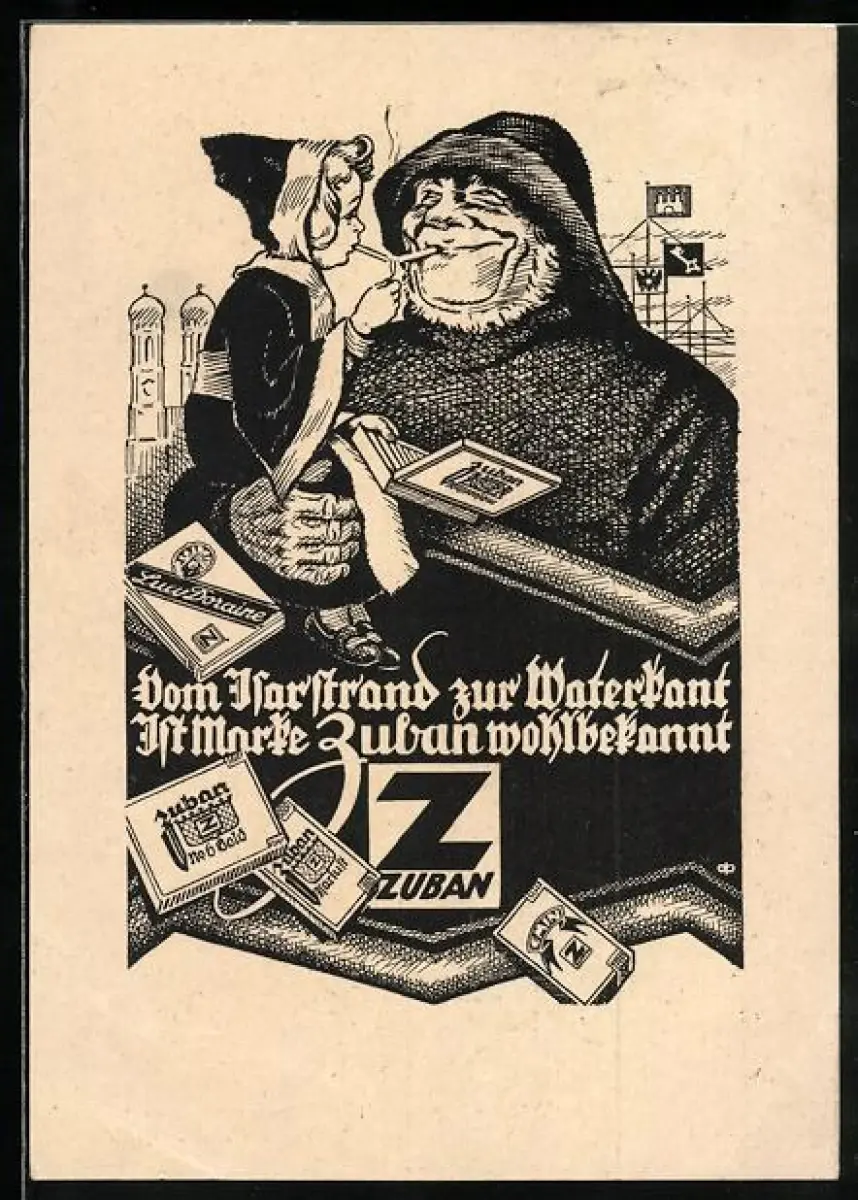 AK Werbung für Tabak-Marke Zuban, Seemann im Ölzeug mit Südwester und Zigarette