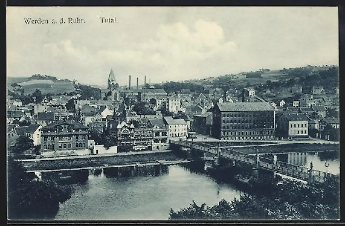 AK Werden a. d. Ruhr, Gesamtansicht, Brücke