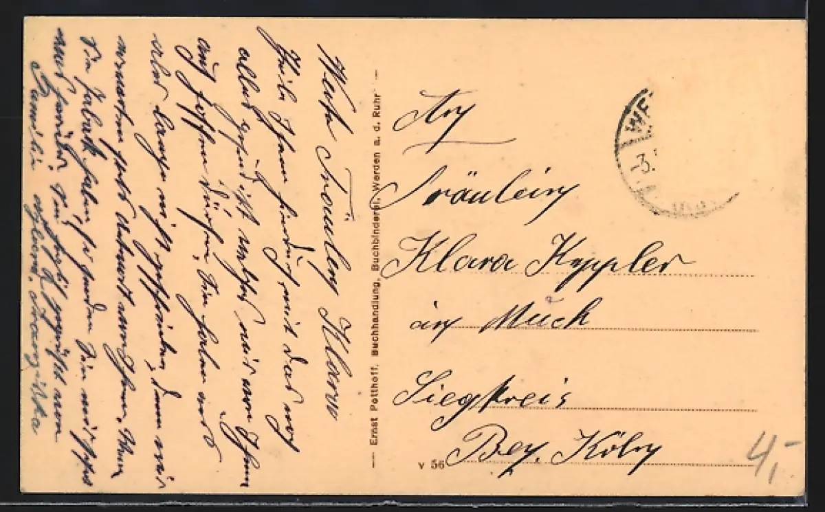 alte Ansichtskarte, gelaufen, Briefmarke entfernt, Abriebspur oben links, guter Zustand