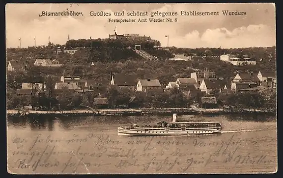 AK Werder / Havel, Bismarckhöhe & Dampfer
